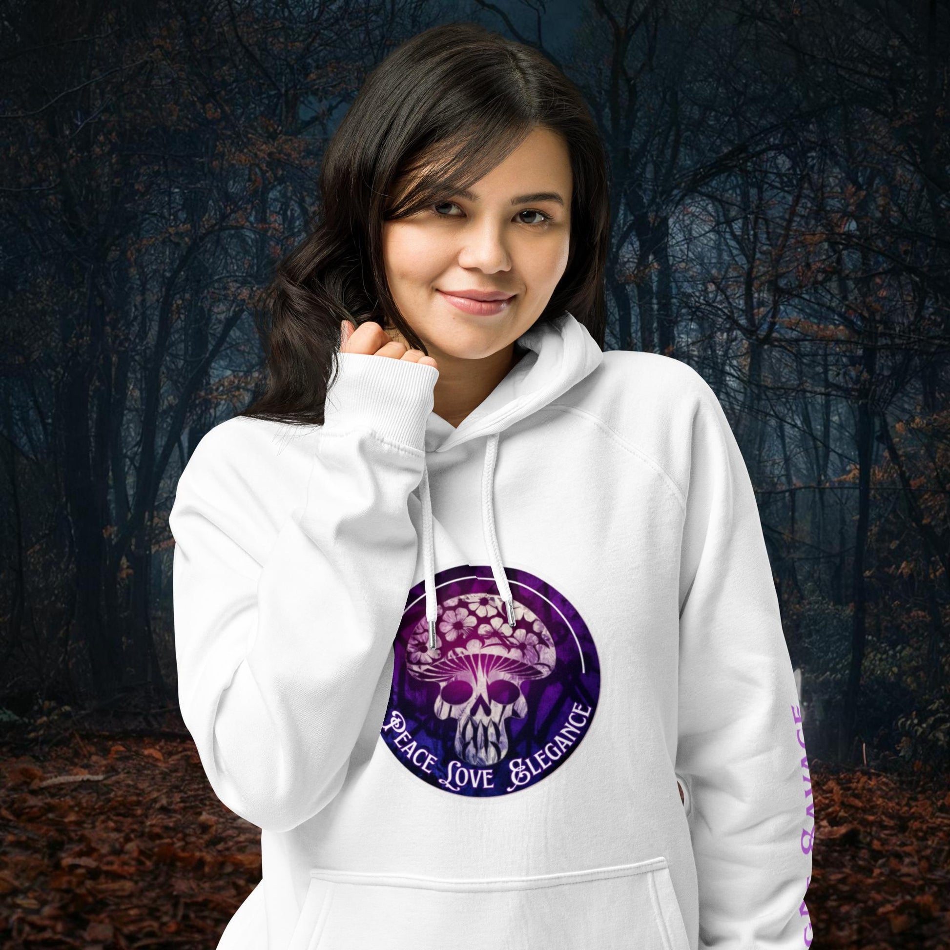 100% Organic Cotton Peace Love Elegance Eco Raglan Hoodie
